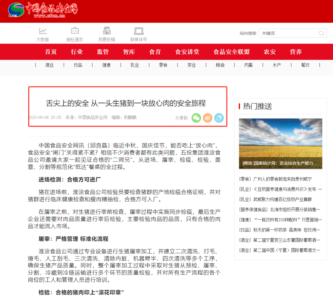 《中国食品安全网》关注:舌尖上的安全,从一头生猪到一块放心肉的安全旅程