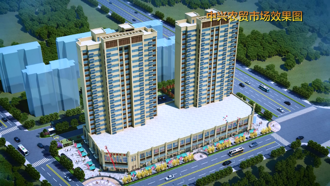 中兴农贸市场迁建项目位于中兴路东侧,国防路西侧,北临城中嘉园小区,总用地面积9698平方米,总建筑面积约29800平方米,是农贸市场、住宅、商铺为一体的建筑综合体项目,项目规划建设地上面积约22800平方米,住宅面积约13000平方米,商业面积约8000平方米。