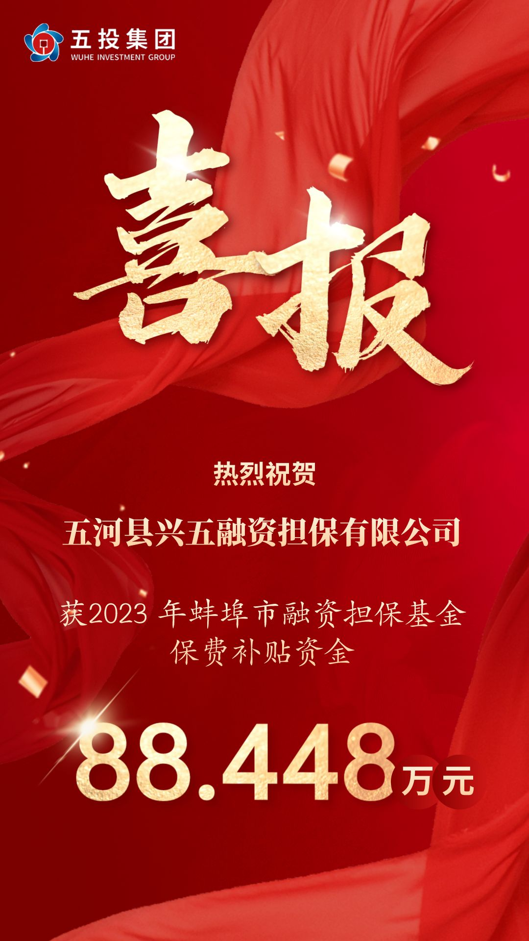 近日,蚌埠市融资担保基金管理委员会下发了《关于兑现2023市资保金保费补贴资金的通知》。经市金融局、市融资担保基金管理委员会审核,符合本次保费补贴奖励的融资担保机构共计2家,合计奖励资金288.448万元。其中,古天乐太阳集团城五河县兴五融资担保有限公司(以下简称“兴五担保公司”)获得奖励资金88.448万元,也是蚌埠各县区融资担保机构中首家获得此项补贴奖励。