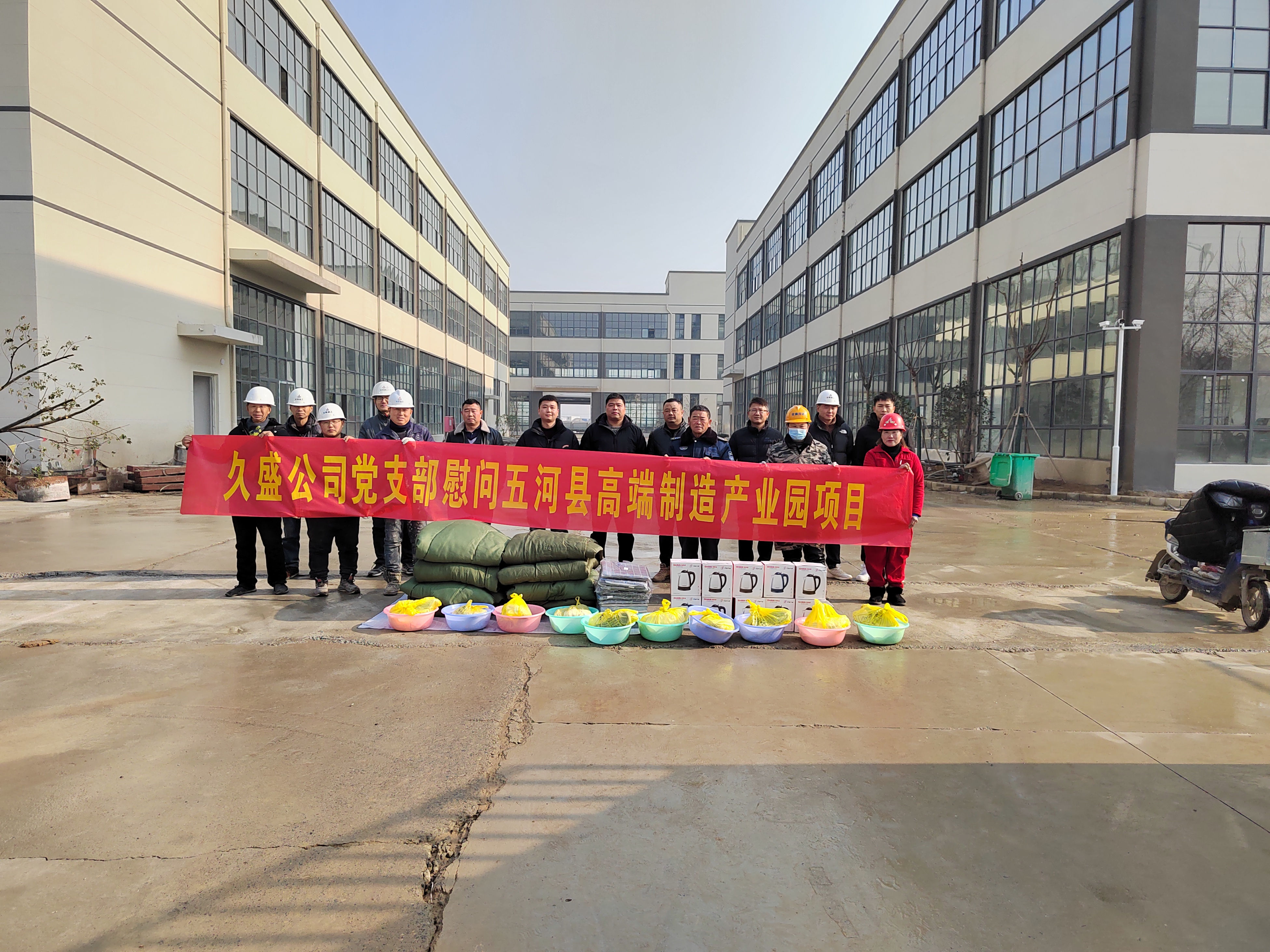 12月下旬,寒潮来袭、气温骤降,全城开启速冻模式,低温天气给久盛公司在建产业园项目建设带来了严峻的挑战。12月27日上午,五河县久盛科技发展有限公司党支部相关人员走访慰问五河县高端装备制造产业园在建项目一线工人,切实将关心和关爱送到一线,进一步增强一线工人的归属感、获得感和幸福感。
