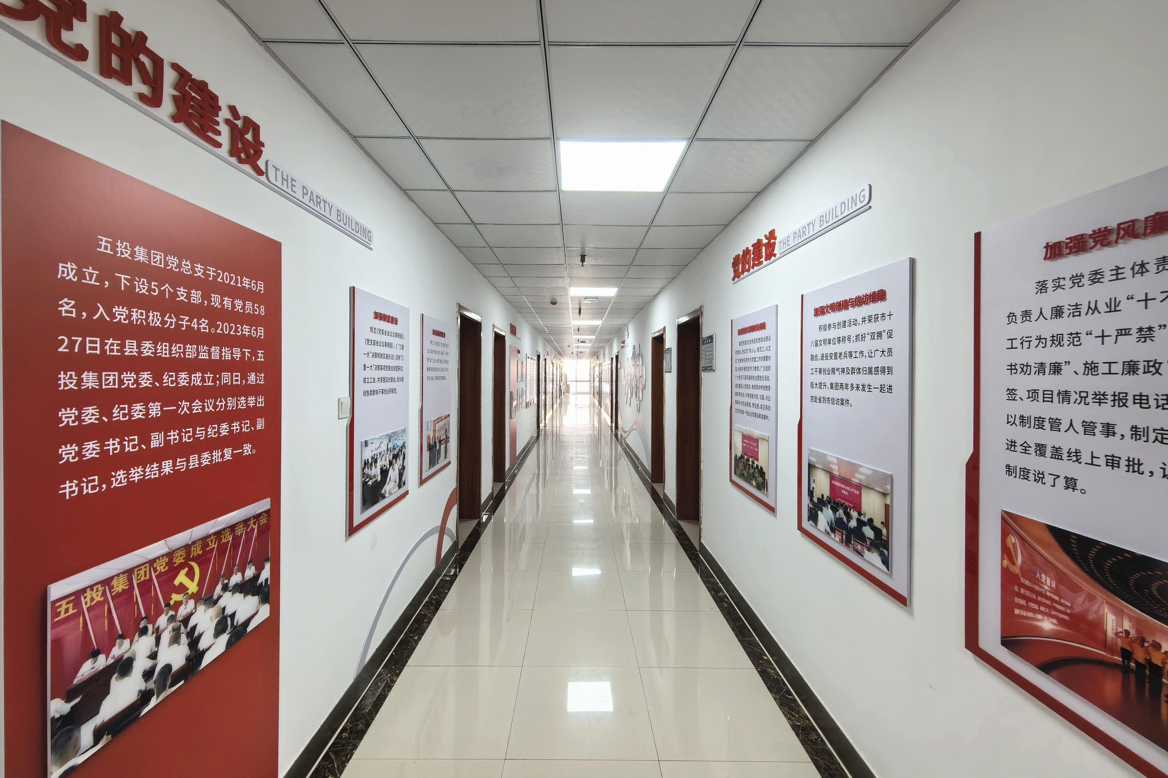 党建文化长廊包括党的建设、主题教育、党风廉政建设和企业文化4个板块,以党的二十大精神等为主线,展板运用文字、图片等表现形式展示集团党委成立以来开展的各项工作。