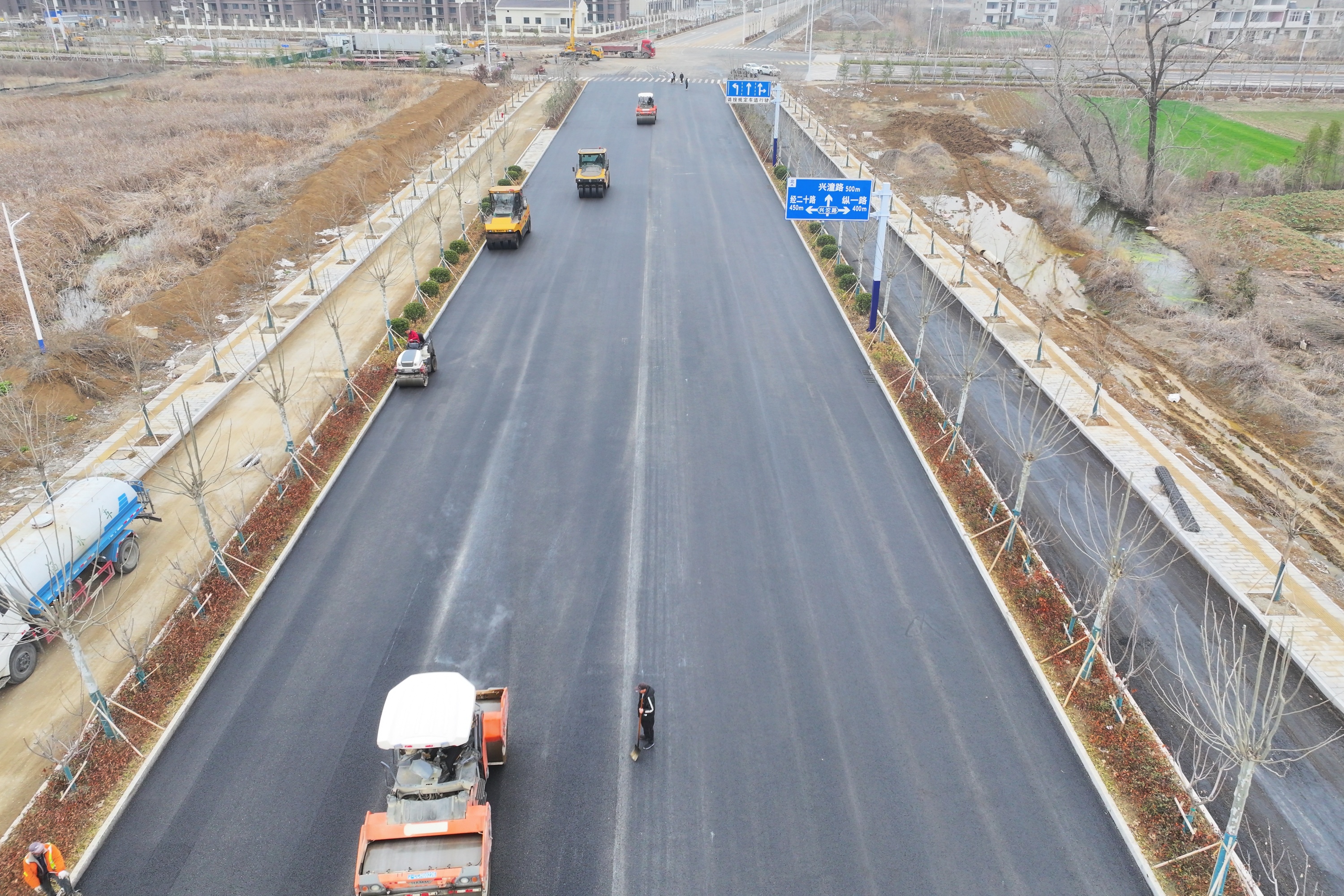“家门口这条沥青路终于要收尾了!去县里办事,接小孩上下学都方便多了。”近日,创业路(兴沱路-南环线路段)项目摊铺沥青路面施工正在有序地收尾中,附近的群众纷纷对家门口这条即将铺好的沥青路赞不绝口。