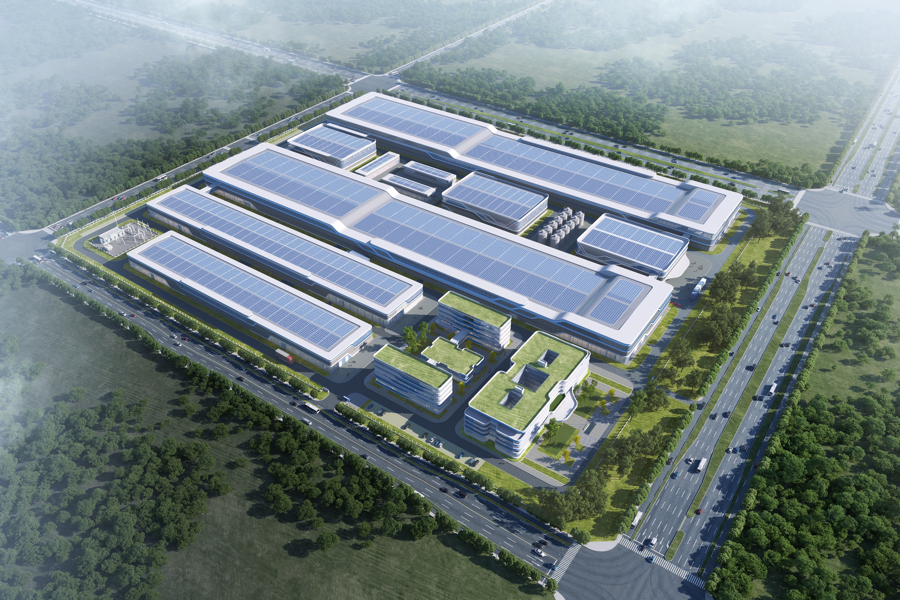 蚌埠恒晟高性能储能动力电池及储能系统集成项目主要建设内容包括:两栋电芯厂房,两栋PACK厂房,一栋动力站房,一处NMP罐区,一栋成品库,一栋原材料库,两栋甲类库,一栋固废库,一栋变电站,一栋4层综合楼,一栋2层辅助楼,两栋5F倒班楼。项目总用地面积约为360亩,总建筑面积约18万平方米。合同工期380天。