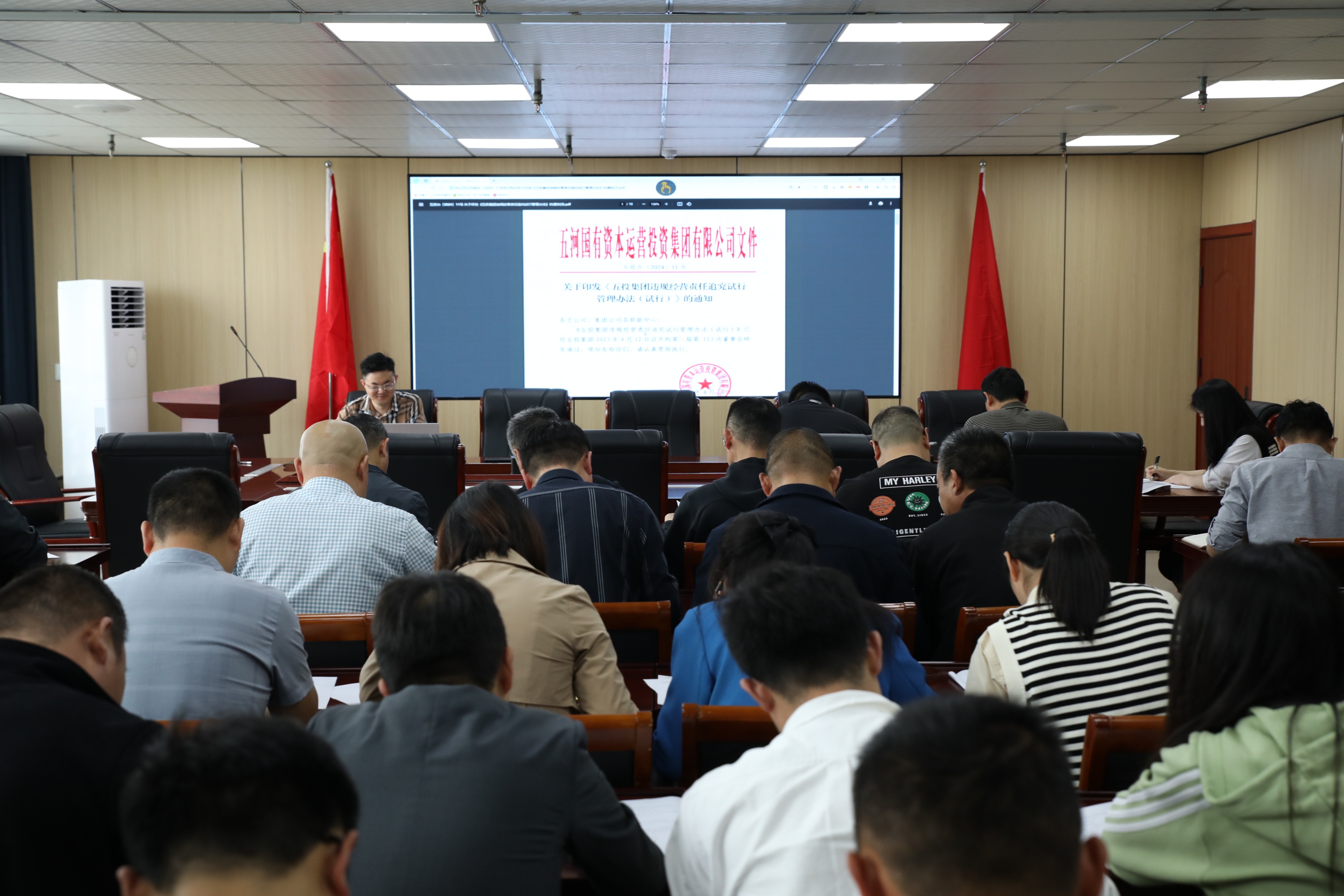 为认真贯彻落实国有企业违规经营投资责任追究的有关工作要求,进一步提升国资系统相关工作人员业务能力素质,有效指导业务合规开展,4月25下午,古天乐太阳集团城审计核算中心组织各经营性公司全体人员共同学习了《古天乐太阳集团城违规经营责任追究试行管理办法》。