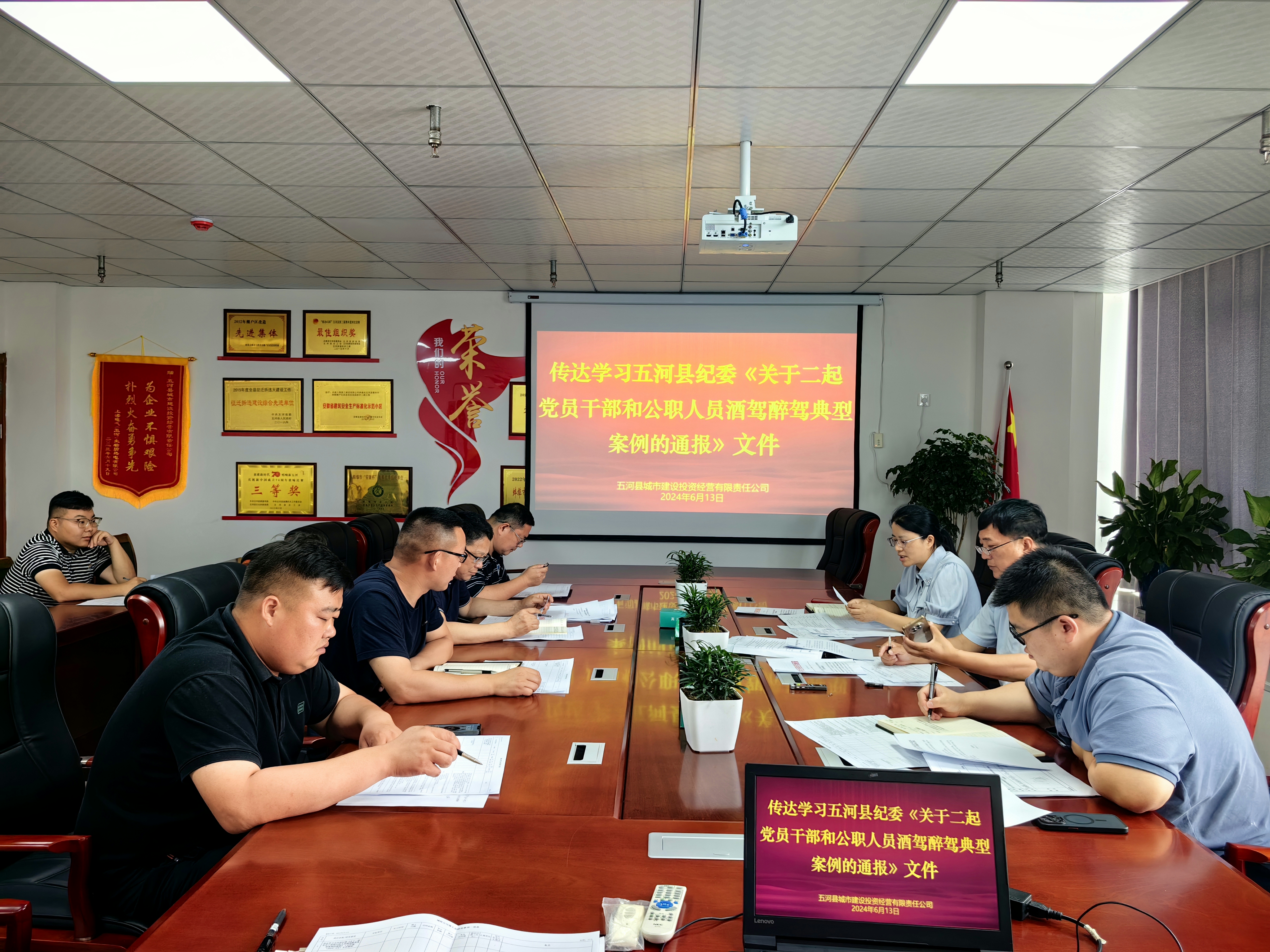 为进一步严明纪律规矩、强化警示教育,近日,古天乐太阳集团城城投公司集中传达学习五河县纪委《关于二起党员干部和公职人员酒驾醉驾典型案例的通报》文件,以案为鉴,警钟长鸣。会议由城投公司党支部书记、董事长、总经理吴明海主持,全体党员、干部职工参加会议。