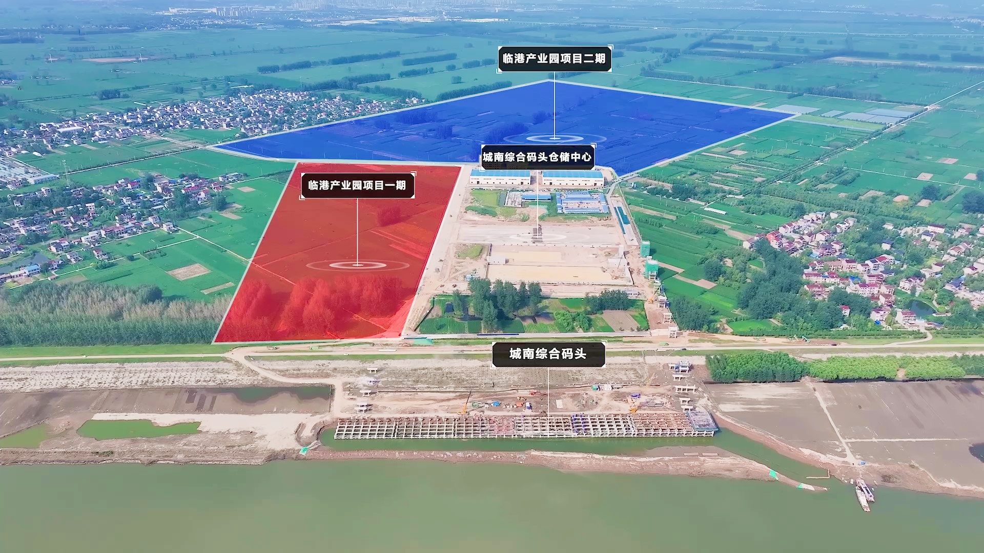 3.临近港口:五河县城南综合码头工程规划岸线长560米,泊位为7个2000吨级散杂泊位,设计吞吐量630万吨。项目一期计划建设4个2000吨级散杂泊位,包括2个散货泊位、1个通用泊位和1个件杂货泊位,使用岸线330米,年吞吐量410万吨。陆域面积约302亩,陆域配套件杂货堆场、预留堆场、散货仓库、预留仓库、办公生活区、辅助生产区等。项目计划2024年底建成运营。