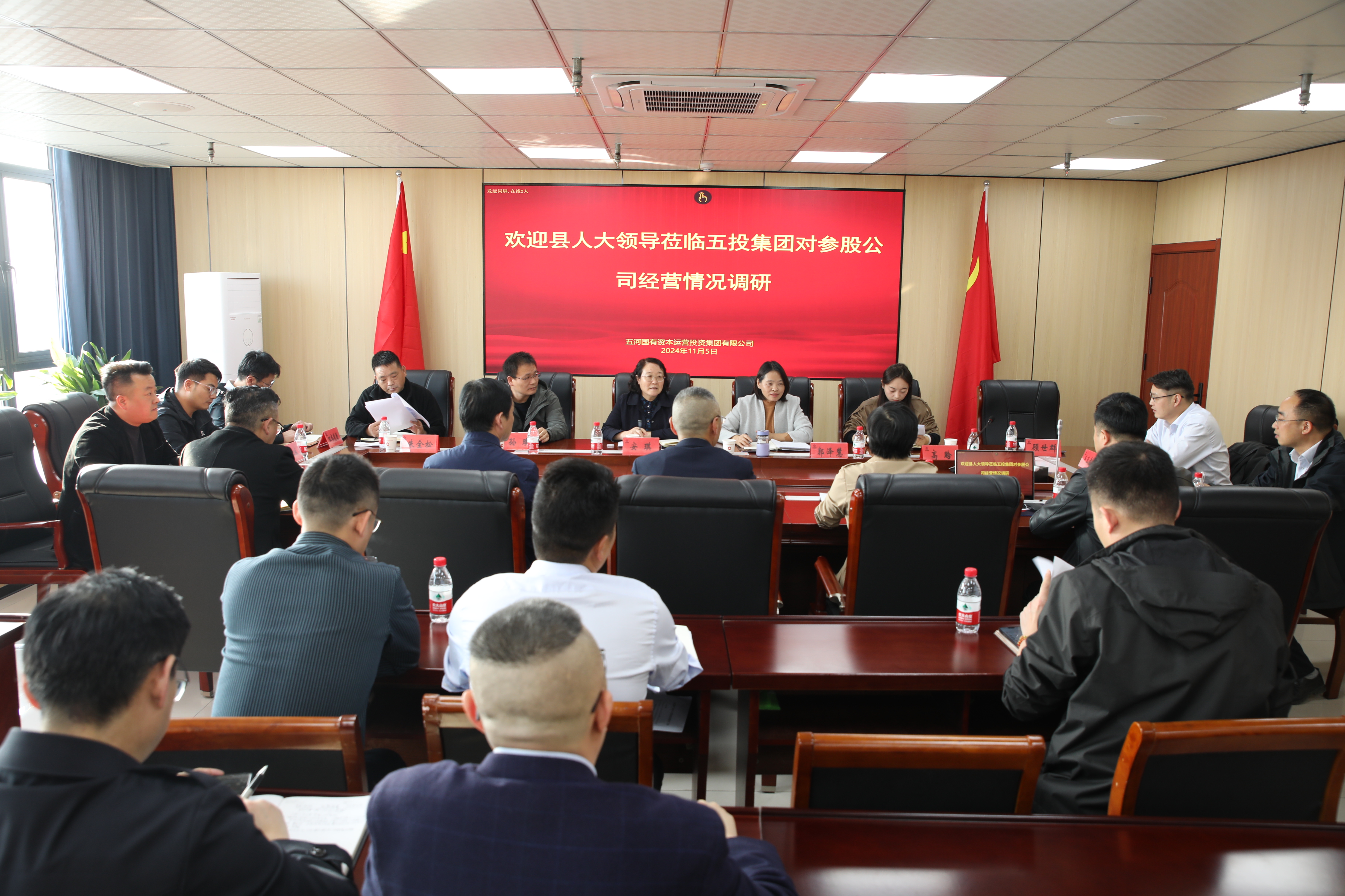 11月5日,县人大常委会副主任安琪带队至古天乐太阳集团城开展投资入股经营情况调研座谈,古天乐太阳集团城党委委员、监事会主席陈全意,董事、副总经理邓超,党委委员、财务总监乔伟及各参股公司负责人参加本次调研座谈。