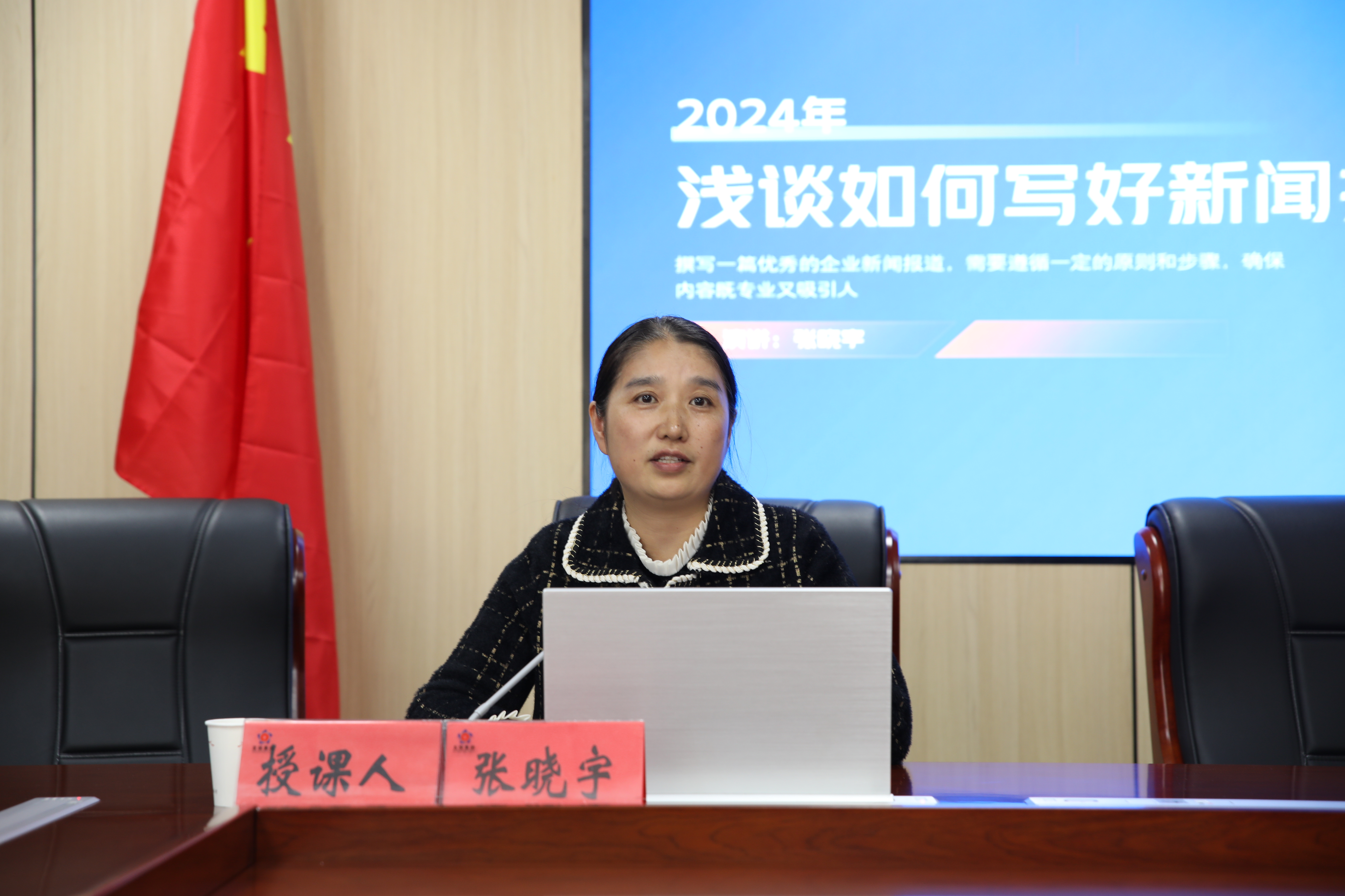 随后,五河县融媒体中心新闻部主任张晓宇做授课培训。她从明确目的与意图、精心选取新闻素材、素材选择与真实性、结构的安排合理等方面教授大家如何写好企业宣传内容。张主任结合自身丰富的实践经验,以理论知识为纲,融合了很多案例,全方位、多层次地阐释了信息宣传工作的本质特征、方式方法,具有很强的针对性、指导性、实践性。