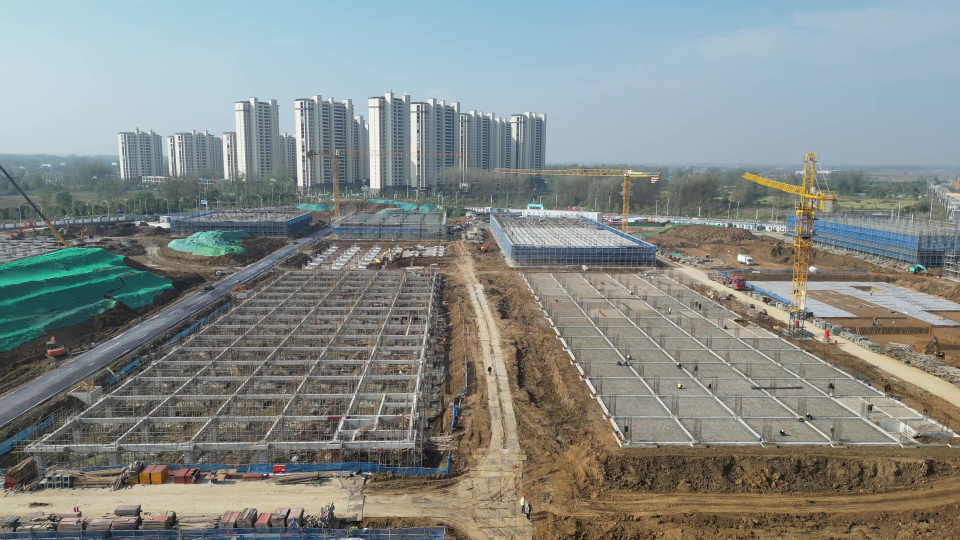 安徽水利项目负责人俞叶保介绍:“我们安徽水利主要建设十三栋厂房两栋员工宿舍,现已完成四栋厂房基础施工,正在进行主体施工阶段,计划春节前完成十三栋厂房封顶。”