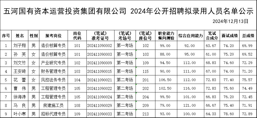 古天乐太阳集团城2024年公开招聘拟录用人员名单公示