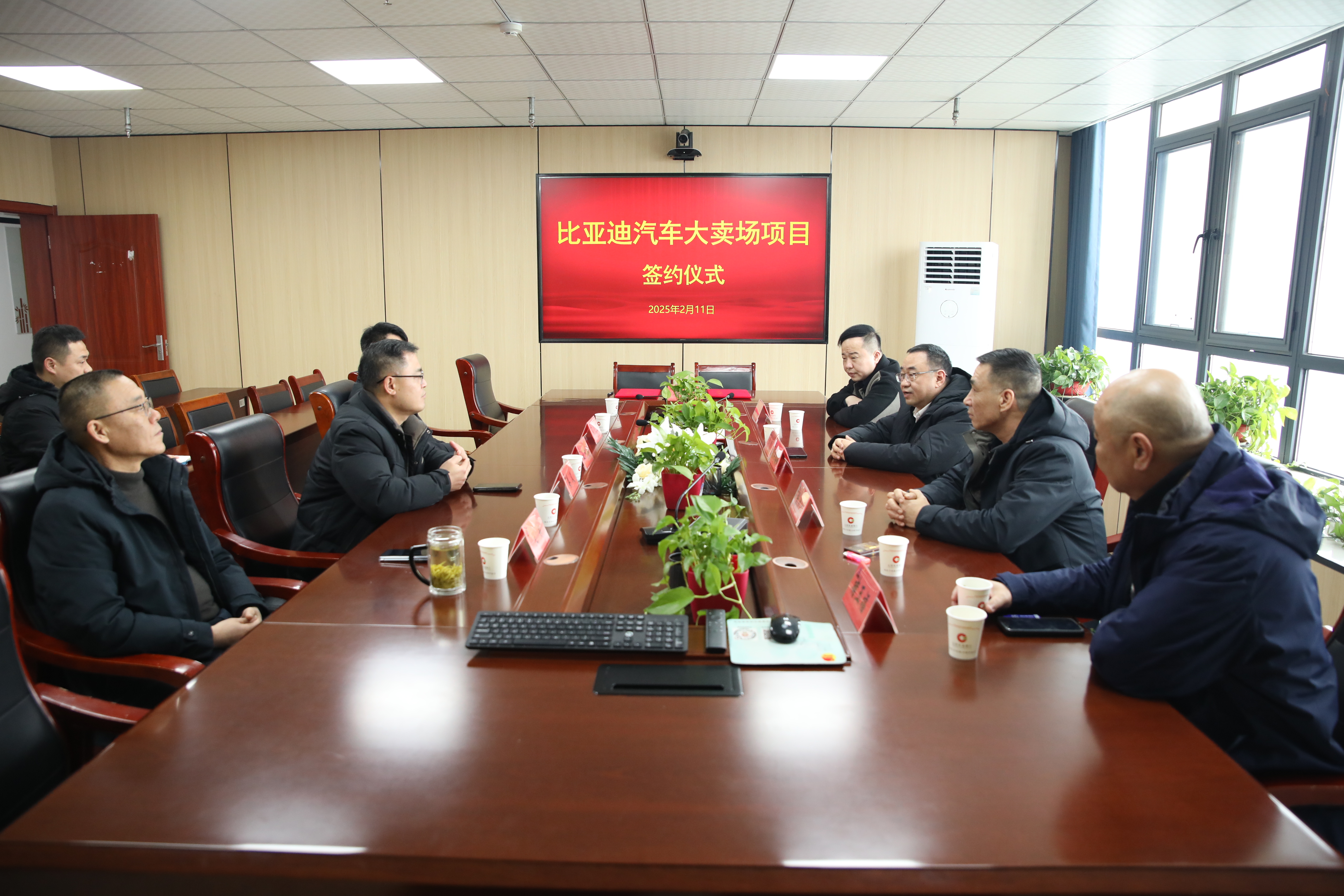 2月11日上午,比亚迪汽车大卖场项目签约仪式在古天乐太阳集团城第一会议室举行。蚌埠东和鸿耀汽车销售服务有限公司、五河县招商和对外合作中心及古天乐太阳集团城等相关负责人齐聚一堂,共同见证这一重要时刻。