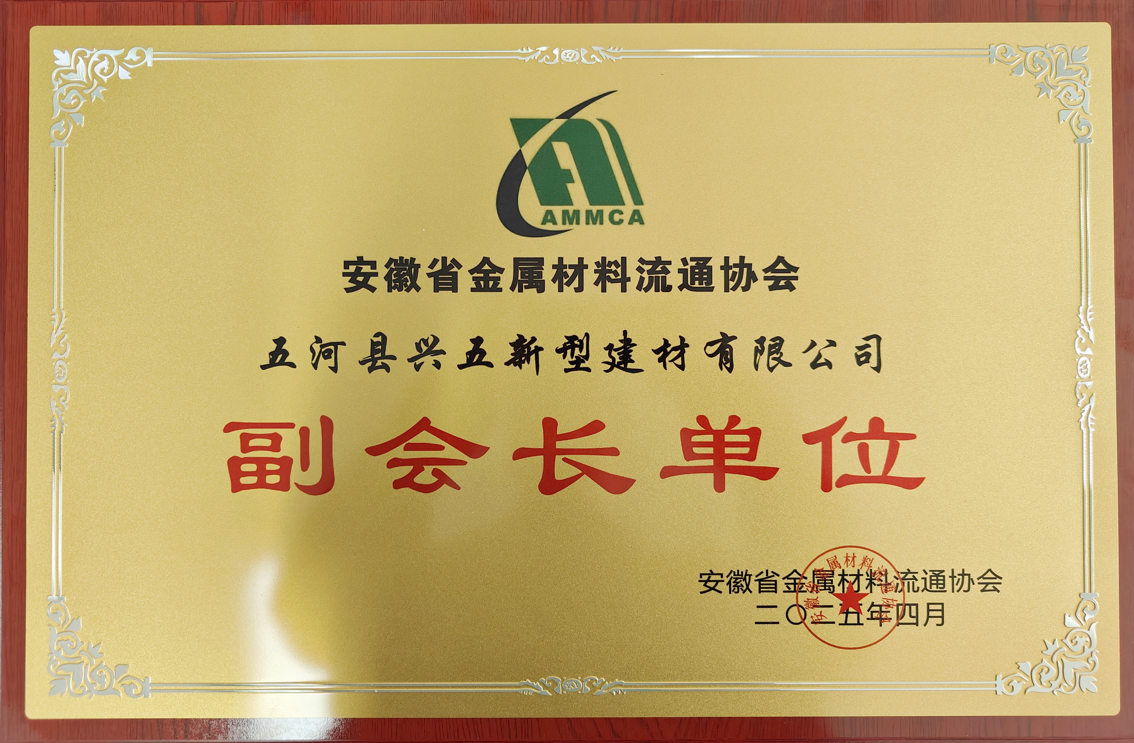 2025年4月2日,安徽省金属材料流通协会2025年第一次会长办公会在合肥召开。会上,五河县兴五新型建材有限公司(以下简称“兴五建材公司”)凭借卓越的市场表现、先进的经营理念以及在行业内的突出贡献,被评选为安徽省金属材料流通协会副会长单位。
