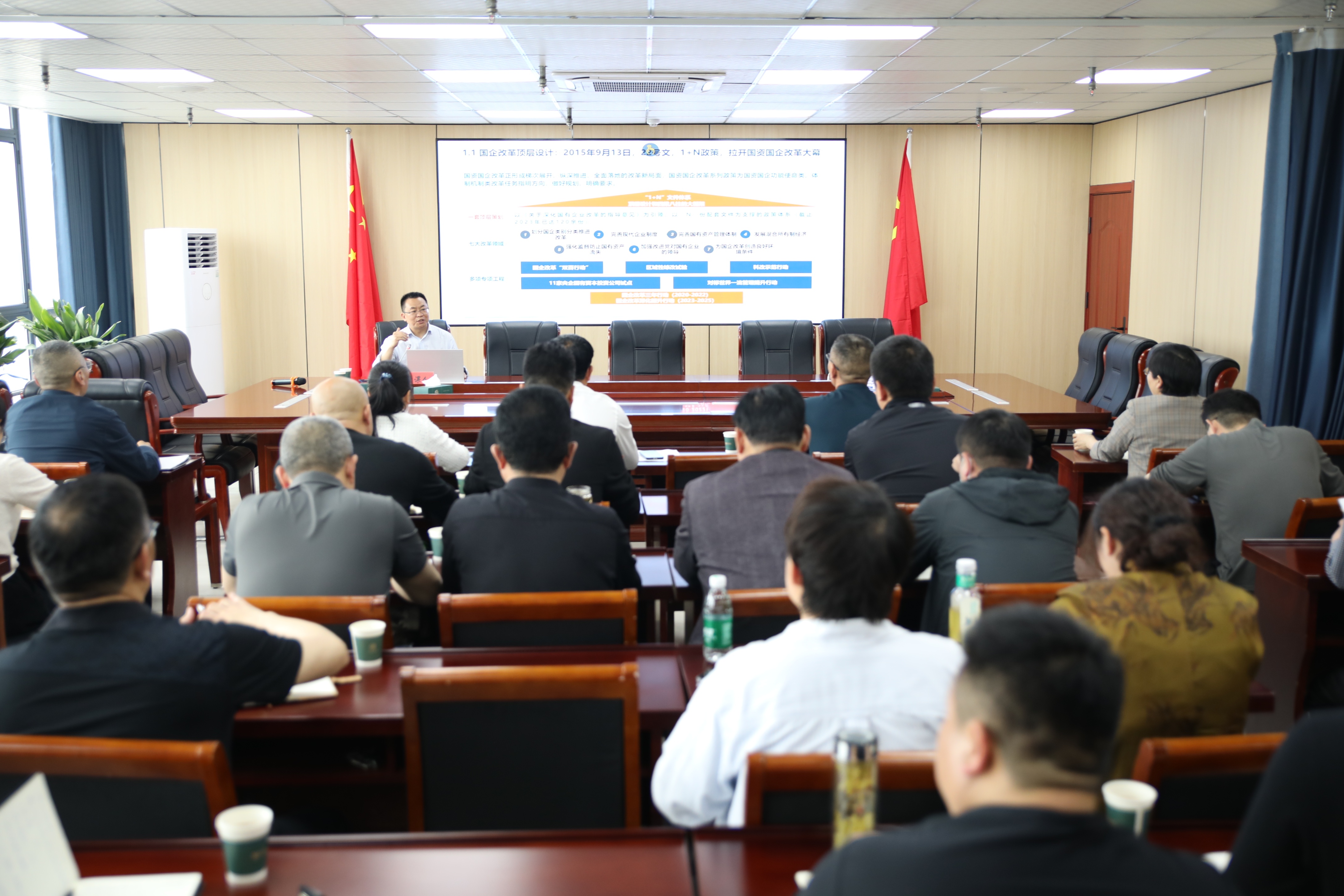 培训中,王魏老师结合国家最新政策导向与标杆企业案例,深入剖析了新一轮国资国企改革的核心任务与实施路径,重点围绕“国企改革关键政策解读与操作实务”、“市场化经营机制建设重点工作”、“地方国企改革方向及建议”等课题展开系统讲解。课程内容既有理论高度,又具实践指导性,为参训人员提供了前瞻性的管理思路和方法论。