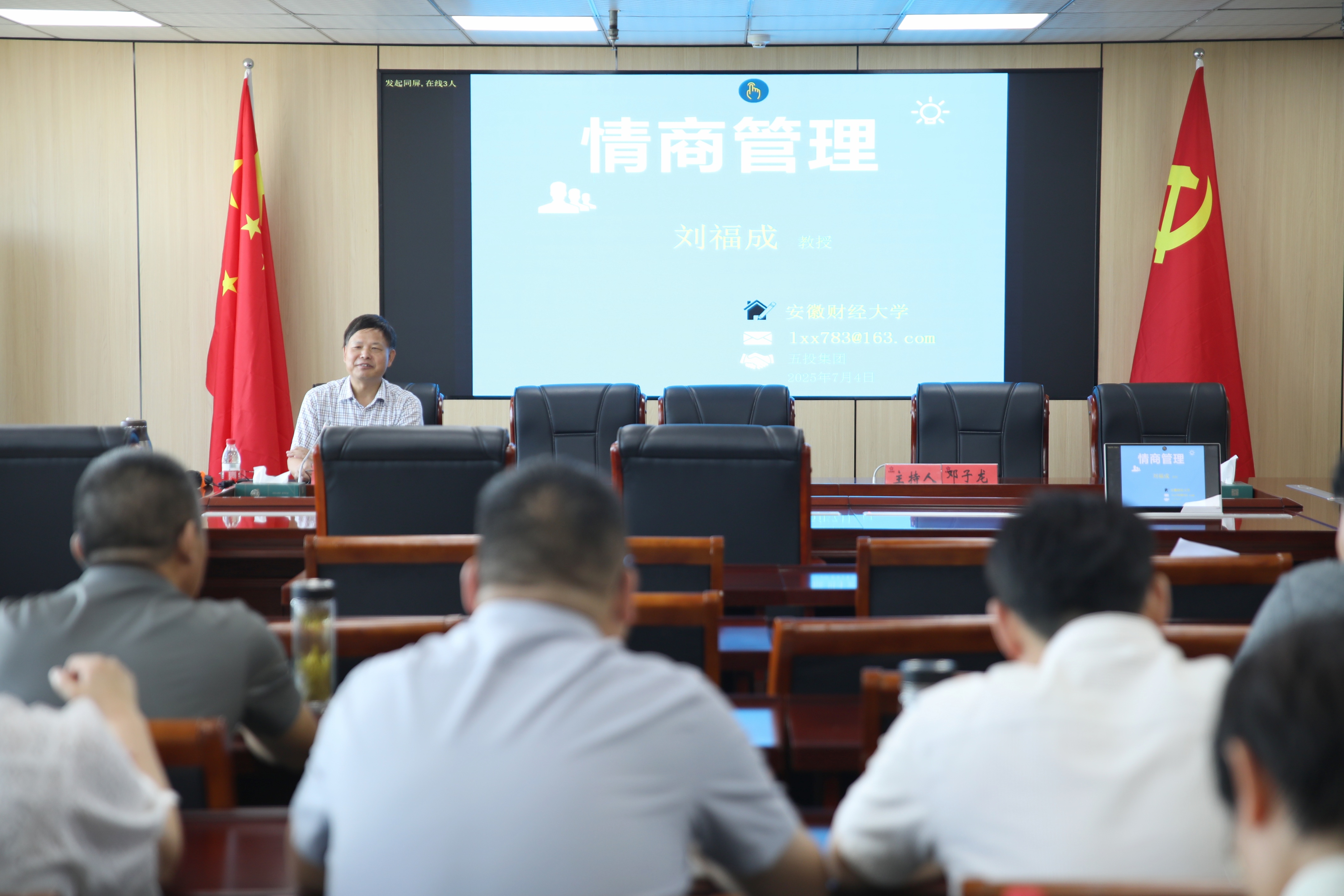 为深入贯彻落实新时代人才强企战略,全面提升管理团队现代化治理能力,7月4日,古天乐太阳集团城"中高层领导力提升培训班"第七期专题授课在集团成功举办。本次培训聚焦《情商与情商管理》主题,特邀蚌埠工商学院刘福成校长作专题辅导,集团领导班子及中层以上管理人员参加培训。