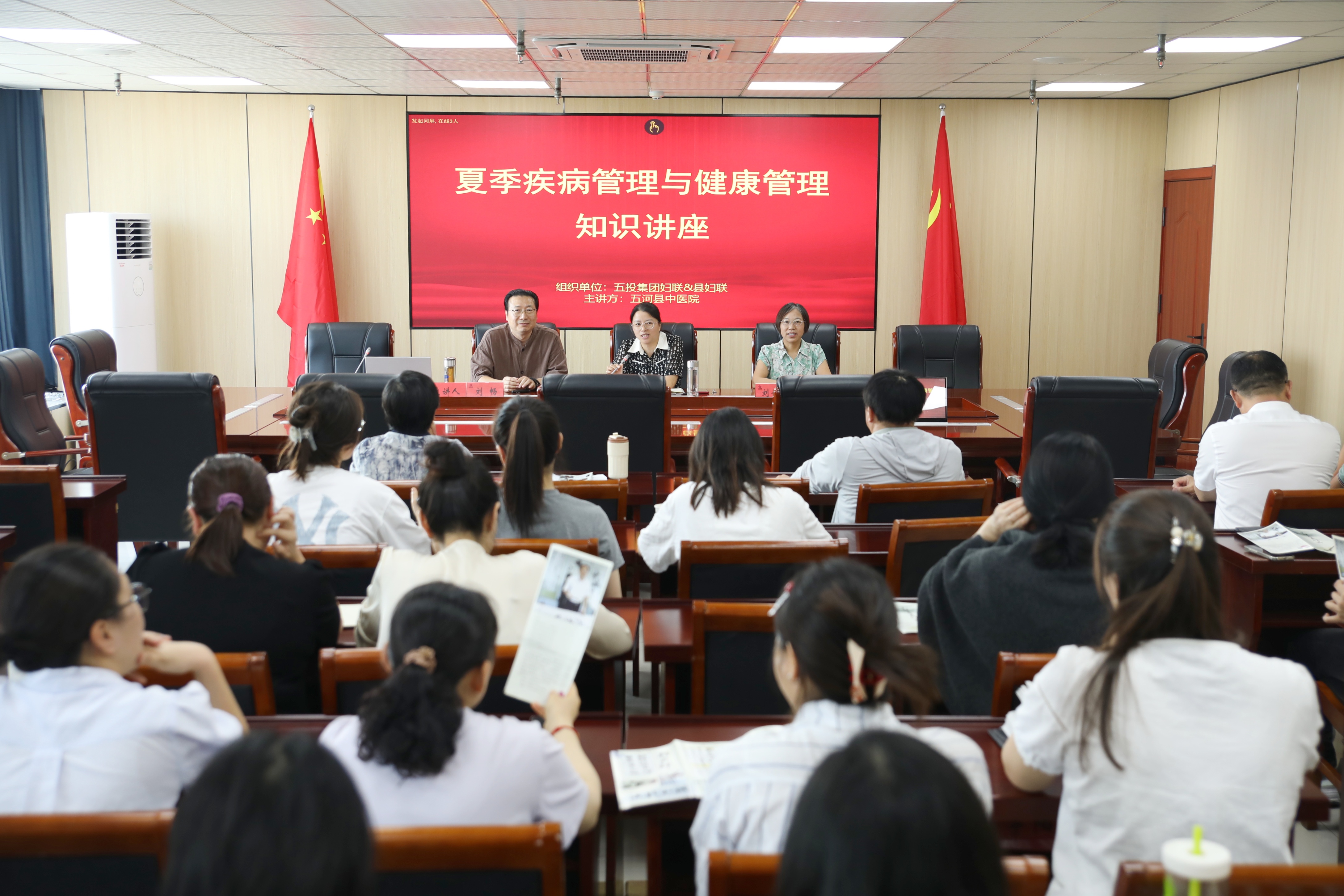 为弘扬中医药传统文化,提升职工健康素养,7月18日下午,古天乐太阳集团城妇女联合会联合五河县妇女联合会举办“夏季疾病管理与健康管理”知识讲座。活动特邀五河县中医院中医专家刘畅现场授课,为集团职工带来一场内容丰富、贴近生活的健康知识分享。