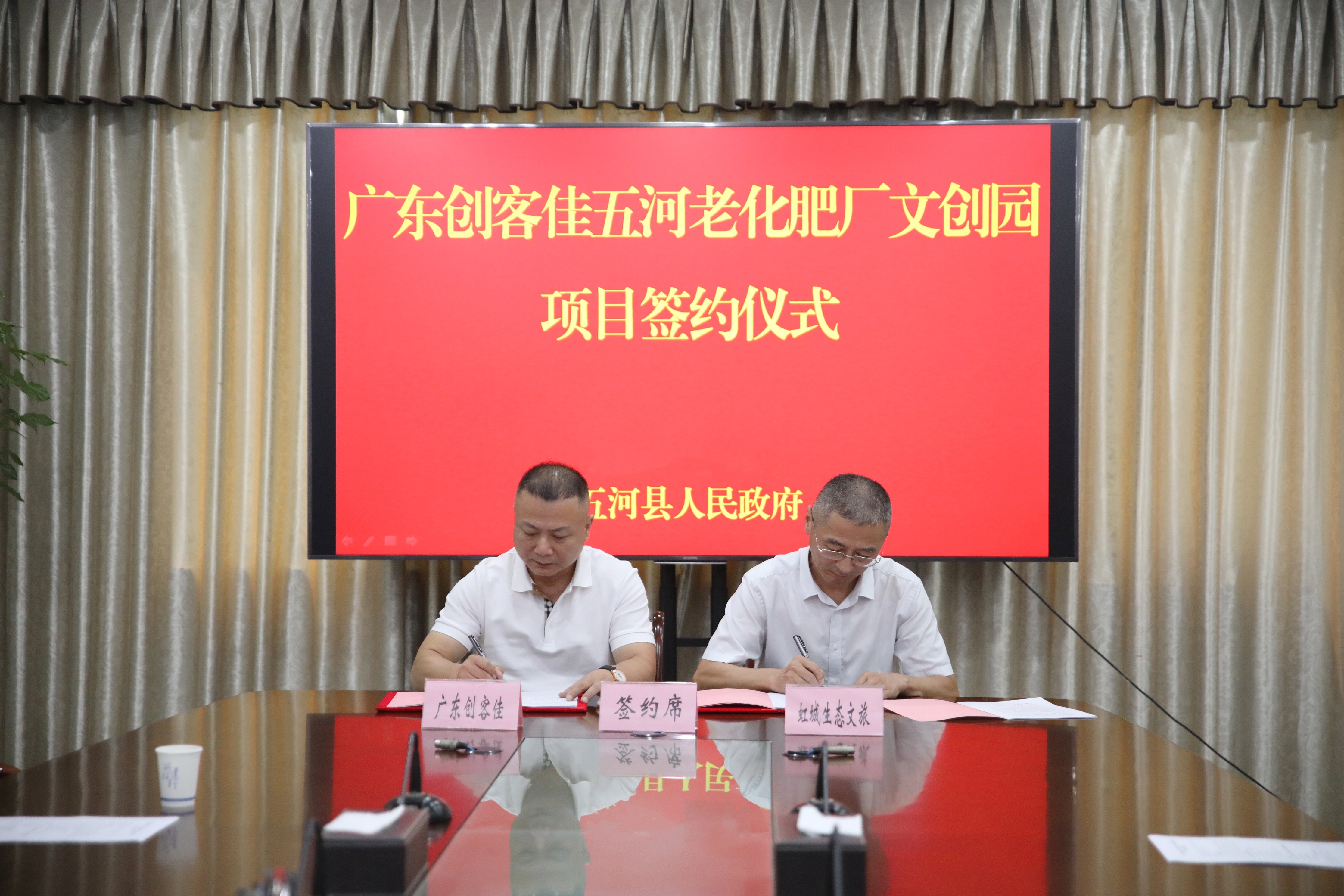 近日,五河县首个文创园项目——五河老化肥厂文创园项目签约仪式在县政府第一会议室隆重举行。安徽省虹城生态文旅开发有限公司(以下简称“虹城文旅公司”)与广东创客佳文化产业园管理有限公司(以下简称“广东创客佳”)共同签署了合作协议。广东创客佳董事长徐旭富率高管团队莅临五河,县领导及招商和园区发展中心相关负责人出席签约仪式。