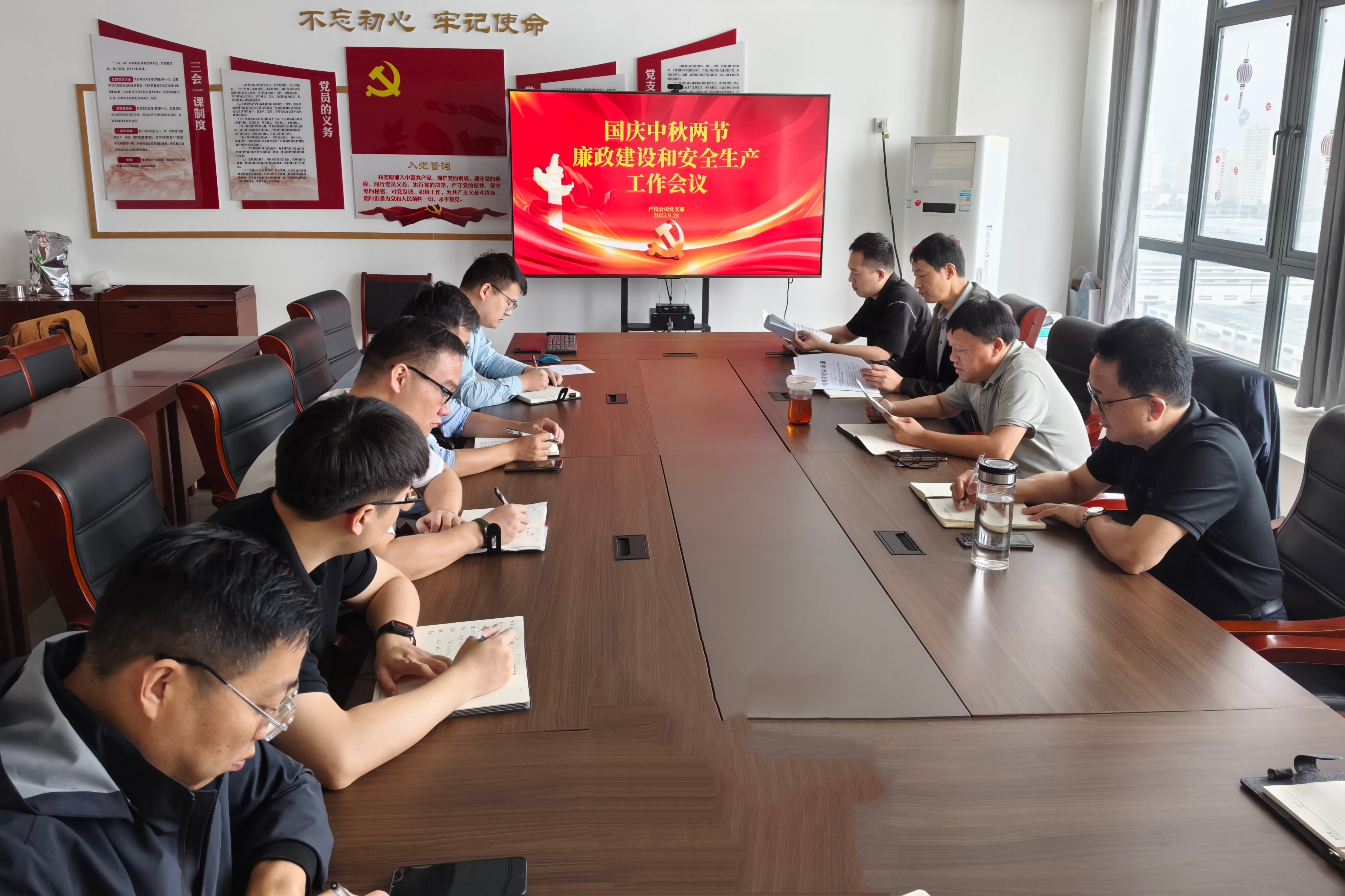 国庆、中秋佳节将至,为确保节日期间风清气正、安全生产形势稳定。9月28日,产投公司党支部组织召开节前廉政警示教育暨安全生产工作部署会。