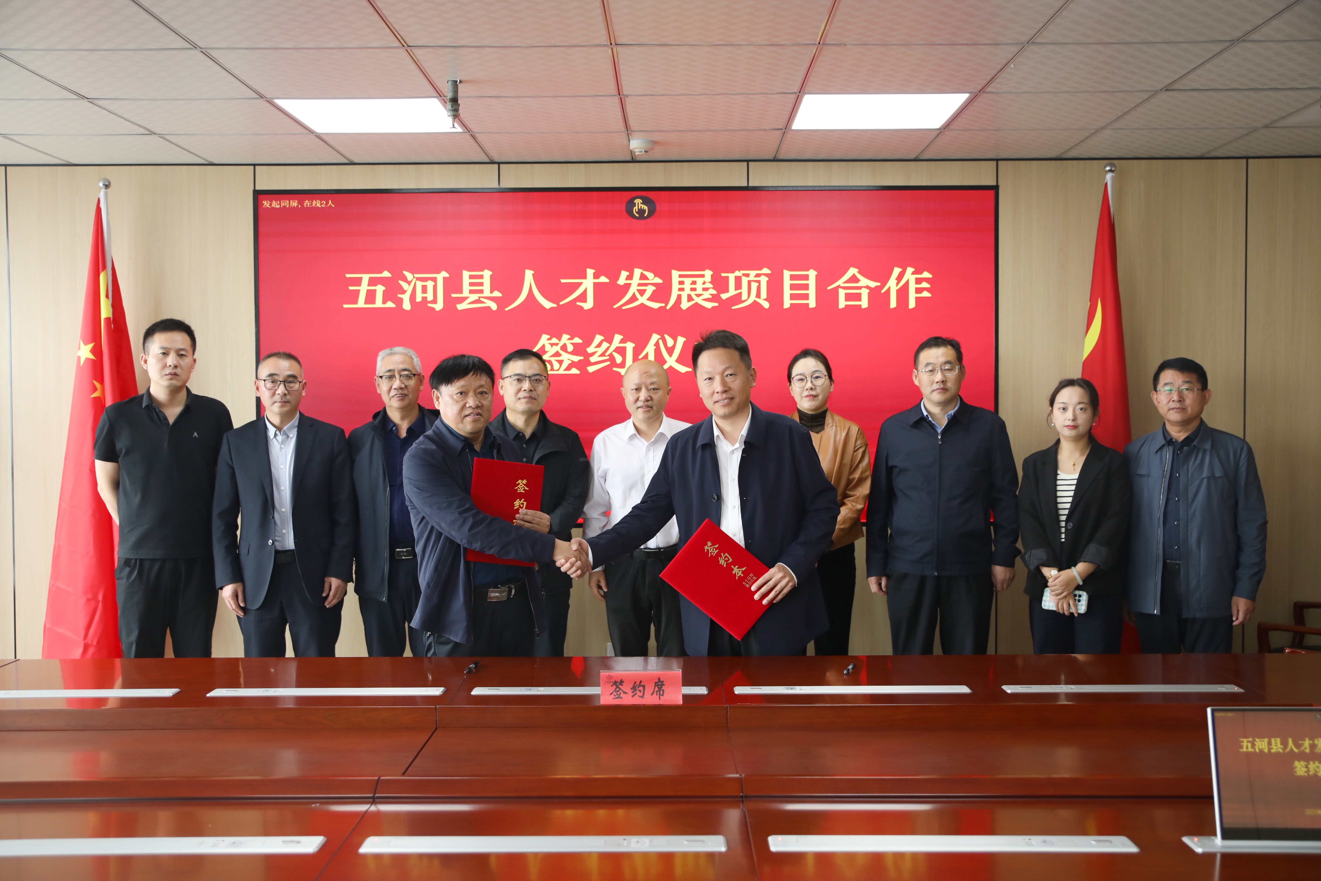 在与会领导的共同见证下,县产投公司与市人才集团双方代表共同签署了合作协议。