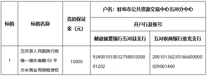 五河县人民医院行政楼一楼东南侧65平方米商业用房拍租交易公告